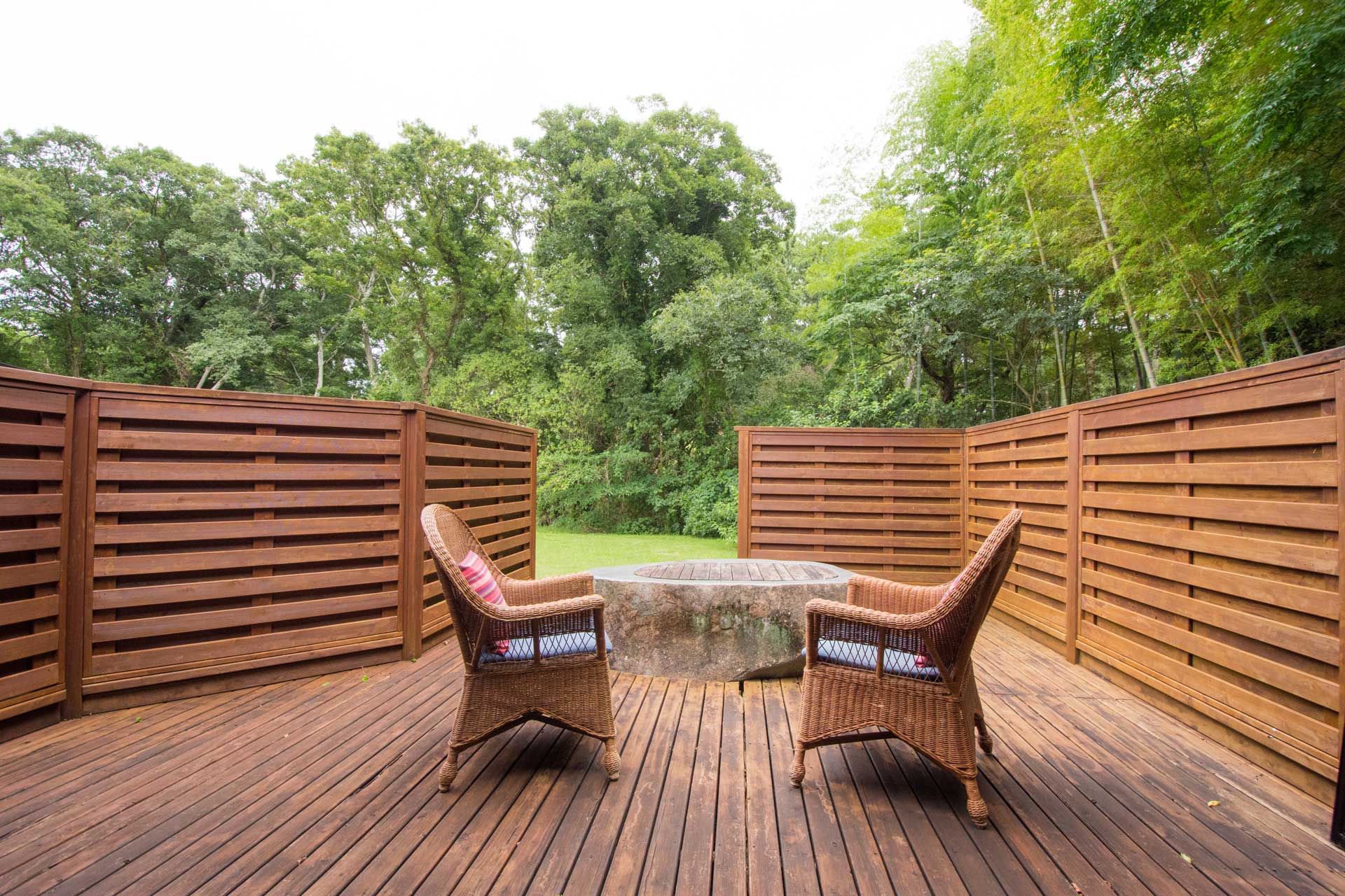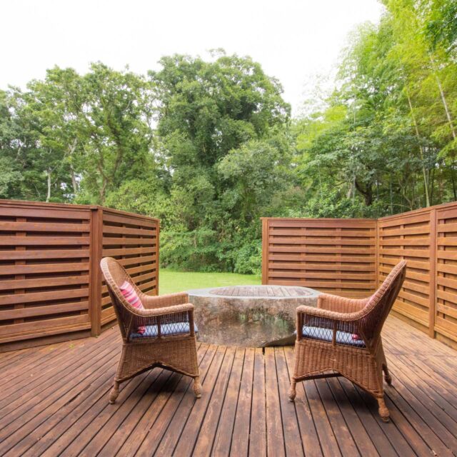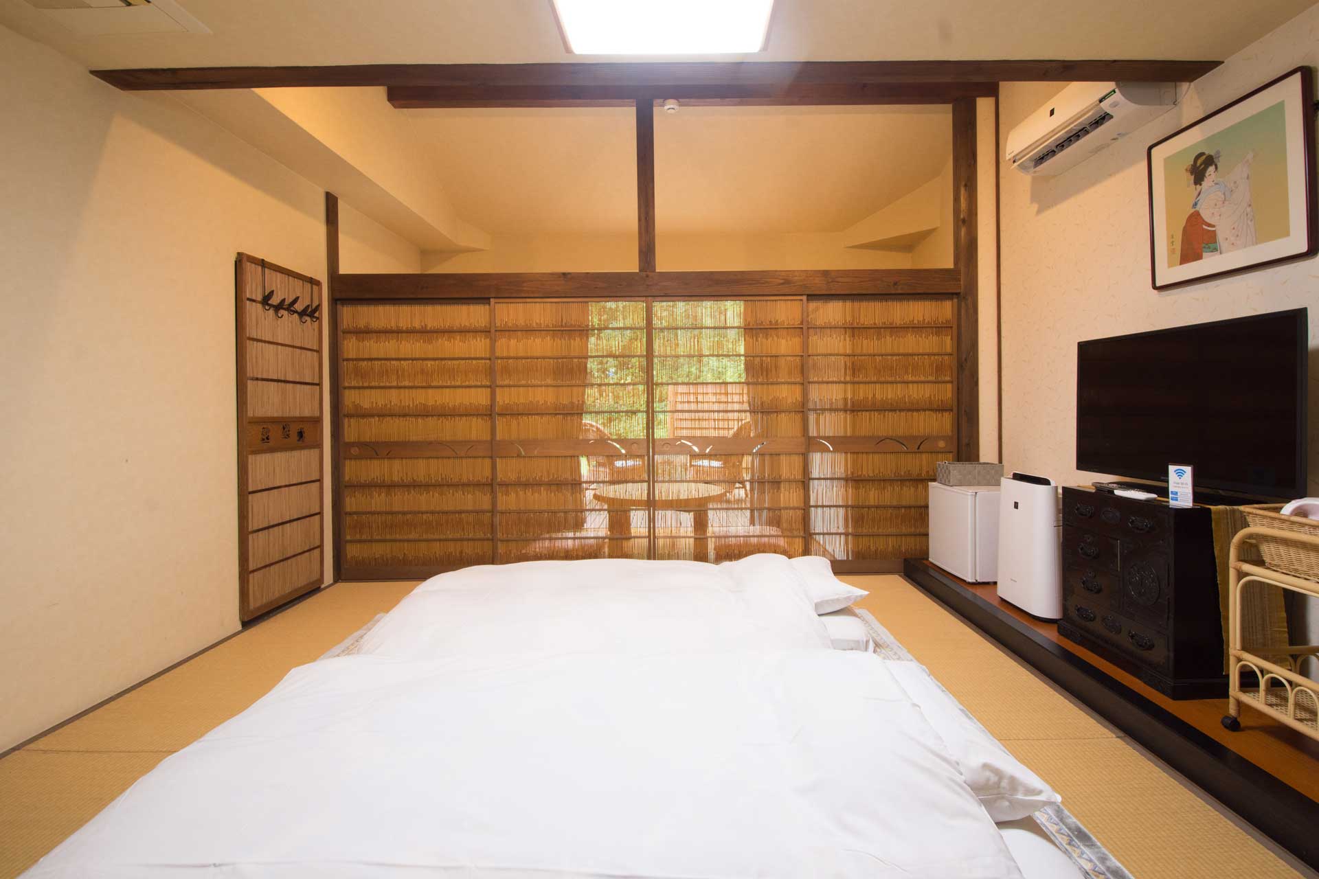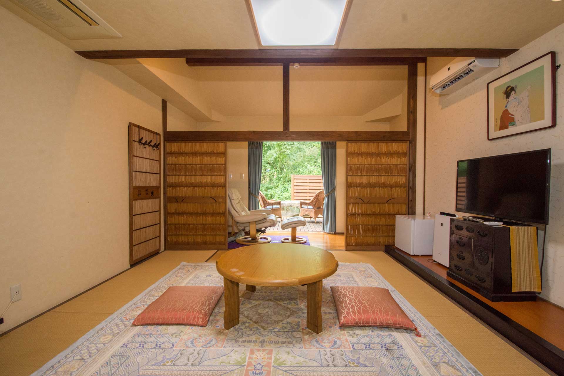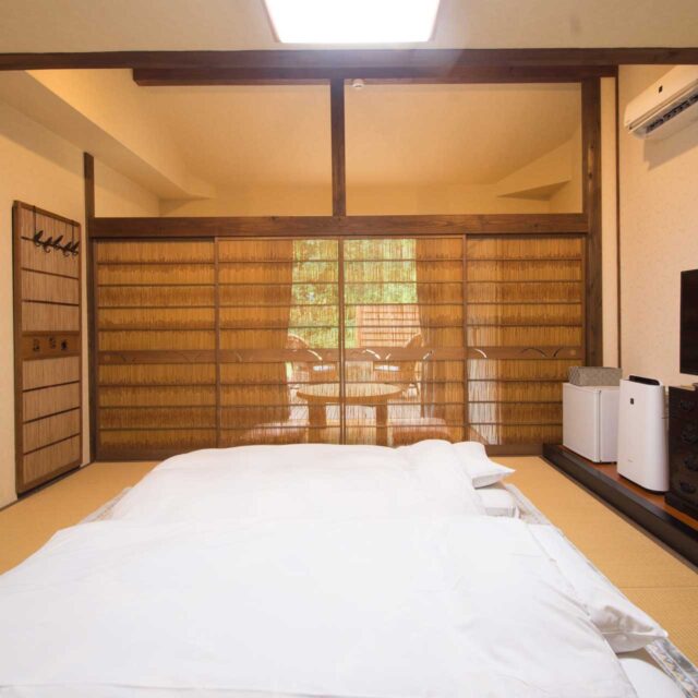 福岡と北九州の中間地点にある。3000坪庭園と全室離れタイプ13部屋の旅館。